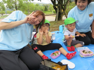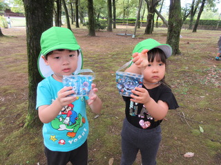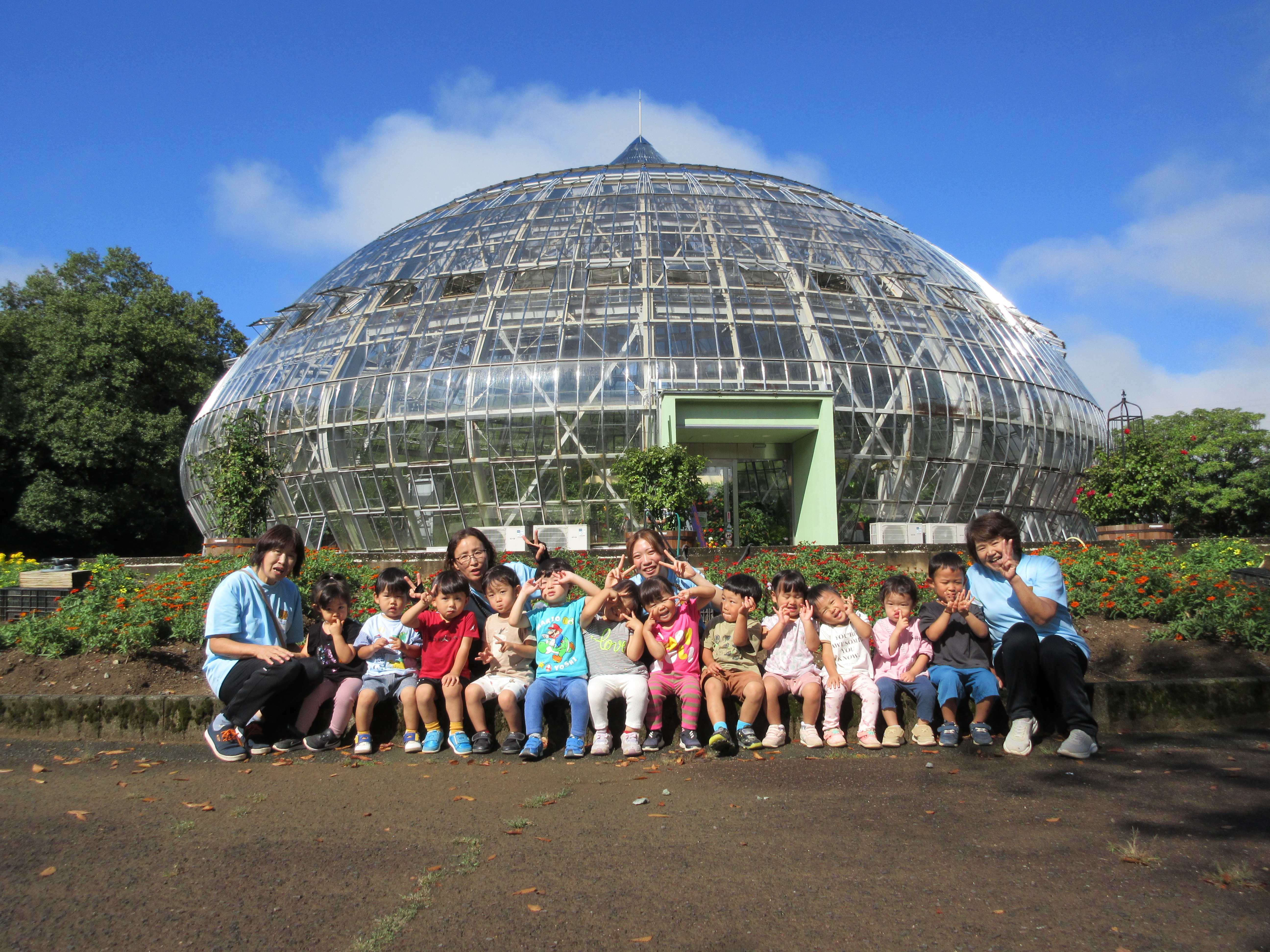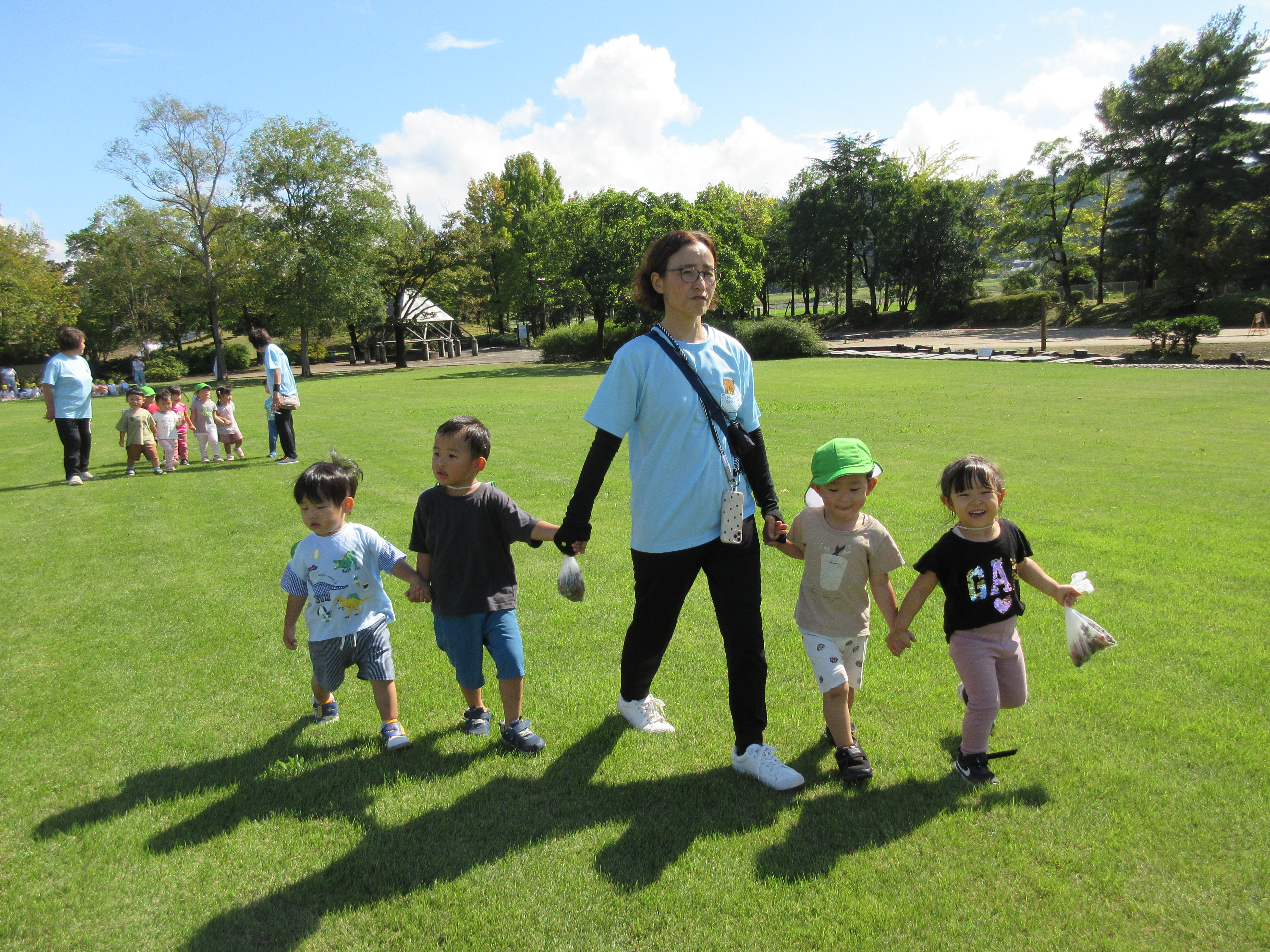 園バスに乗ってグリーンセンターに行ってきました。到着すると元気いっぱいに歩き、滑り台をしたり落ち葉やドングリを拾ったり広い芝生の上を思い切り走ったりして楽しみました。お弁当の時間になると嬉しそうに見せ合う姿も見られました♡秋の自然の中で友達と過ごした楽しい思い出がまた一つ増えました。