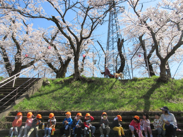 満開の弁天桜を見に行って来ました。今年初のお出かけとあって、バスの中は大盛り上がり🎵桜を見つけるたびに「あそこにあるよ」とみんなが教えてくれました。「こいのぼりを捕まえられるかな?」とジャンプしたり、桜の花びらが舞い散ると「桜の雨だ」と言ったり、子ども達の楽しそうな声が響き渡っていました。