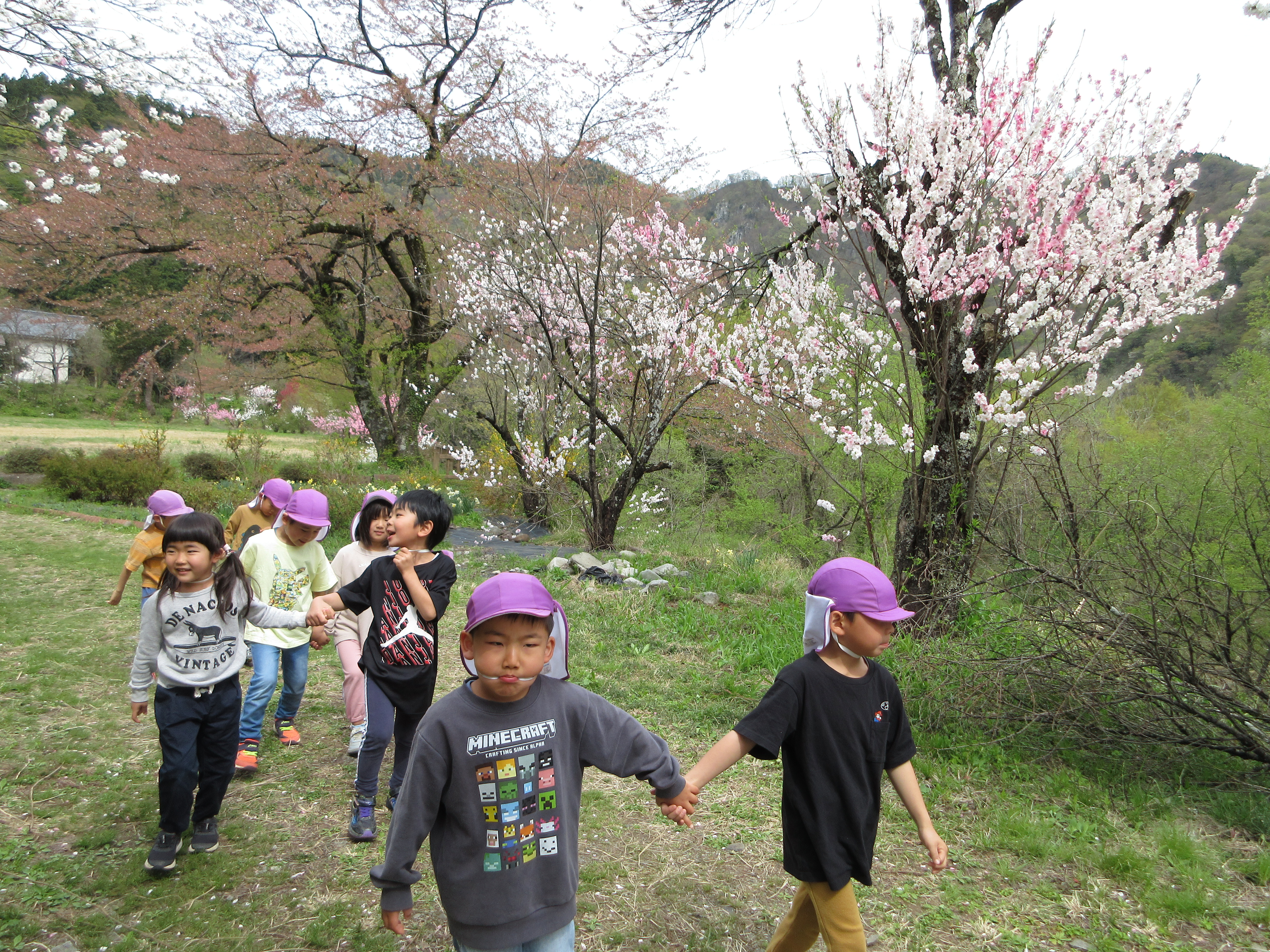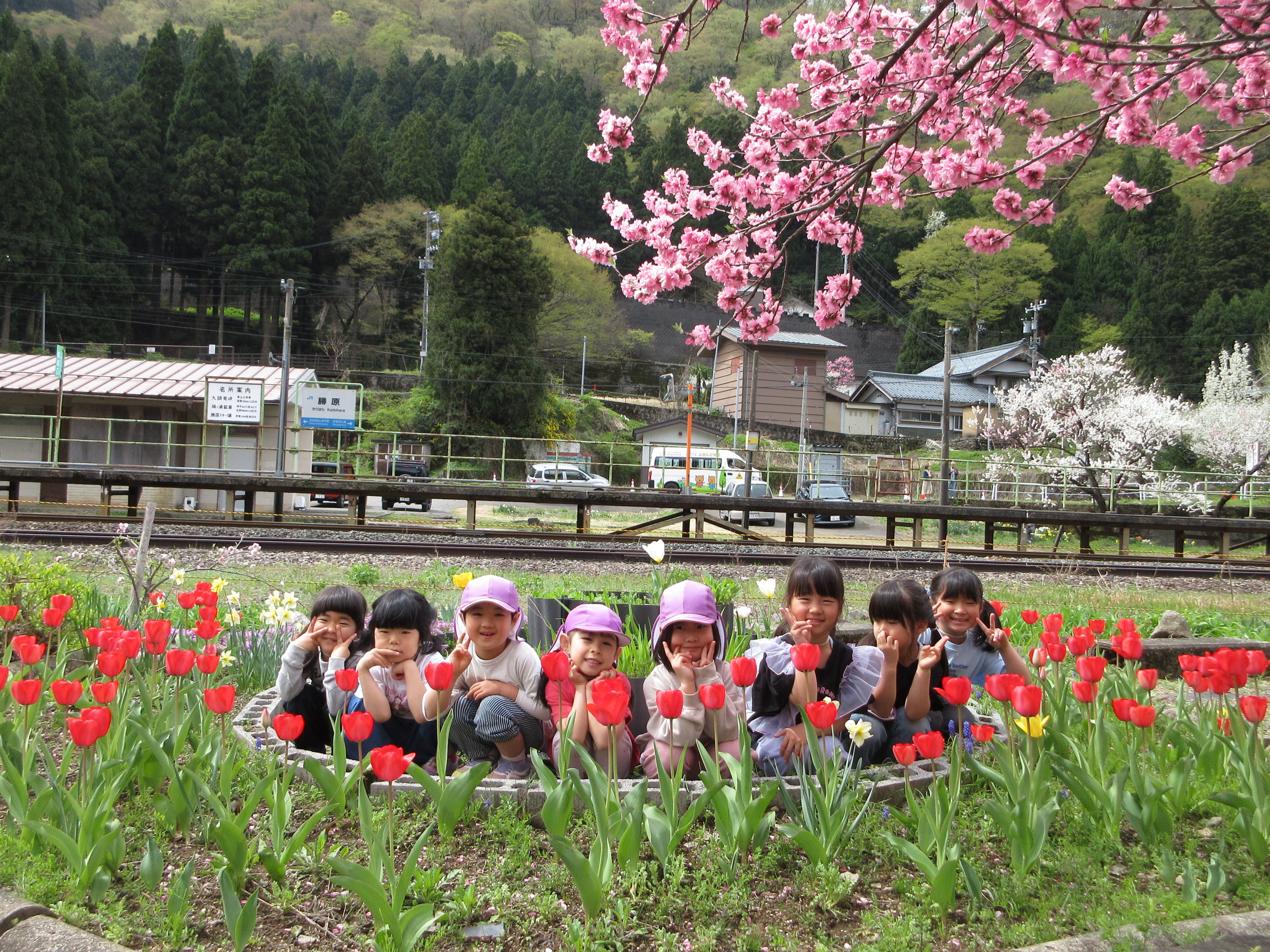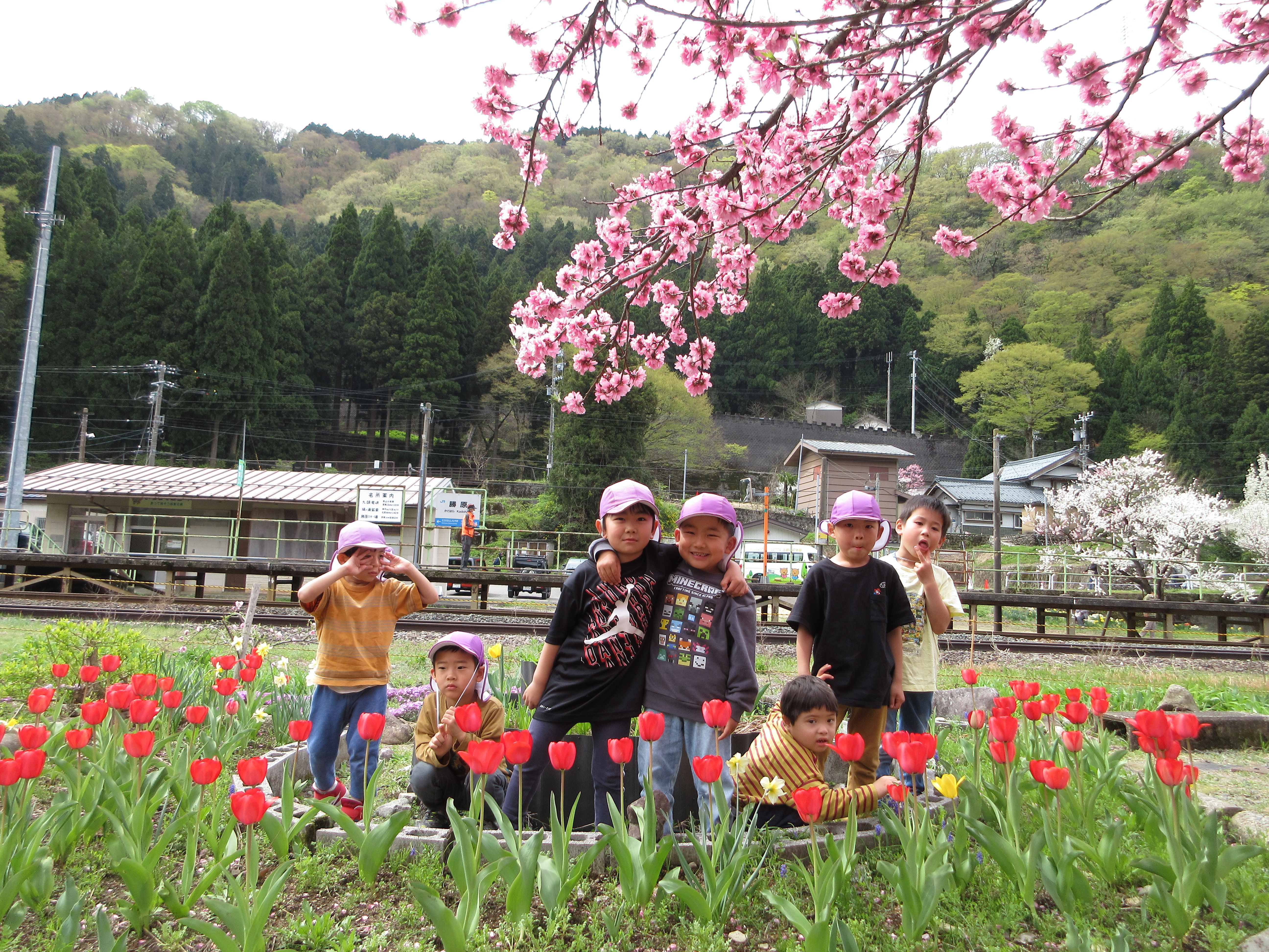 勝原の花桃を見に行ってきました!満開に咲いていて「かわいい💛」とうっとりしたり、匂いを嗅いでみたりと可愛い子どもたちでした。越美北線を見ることもでき、公園でも遊んで大満足のお出かけでした。
