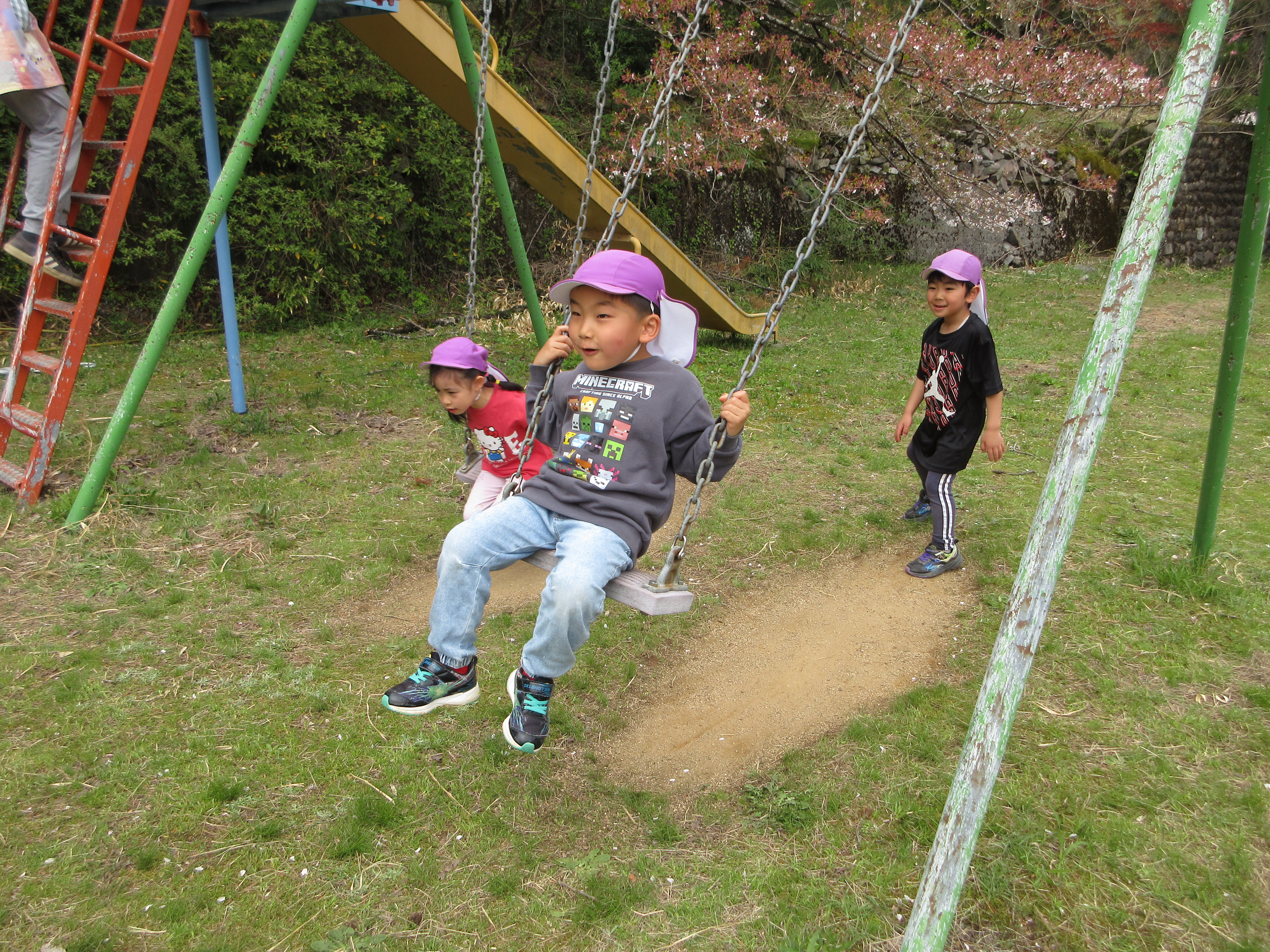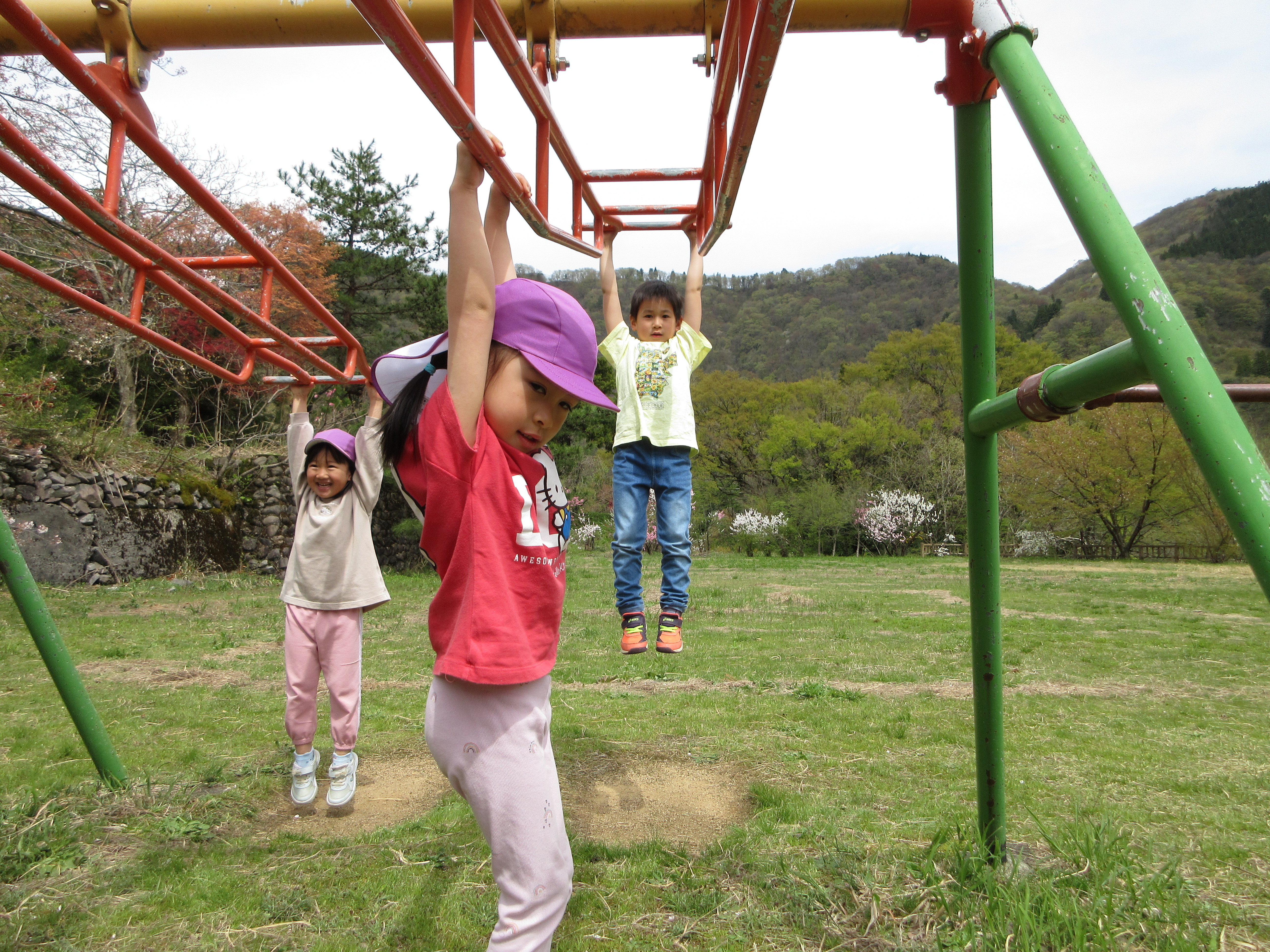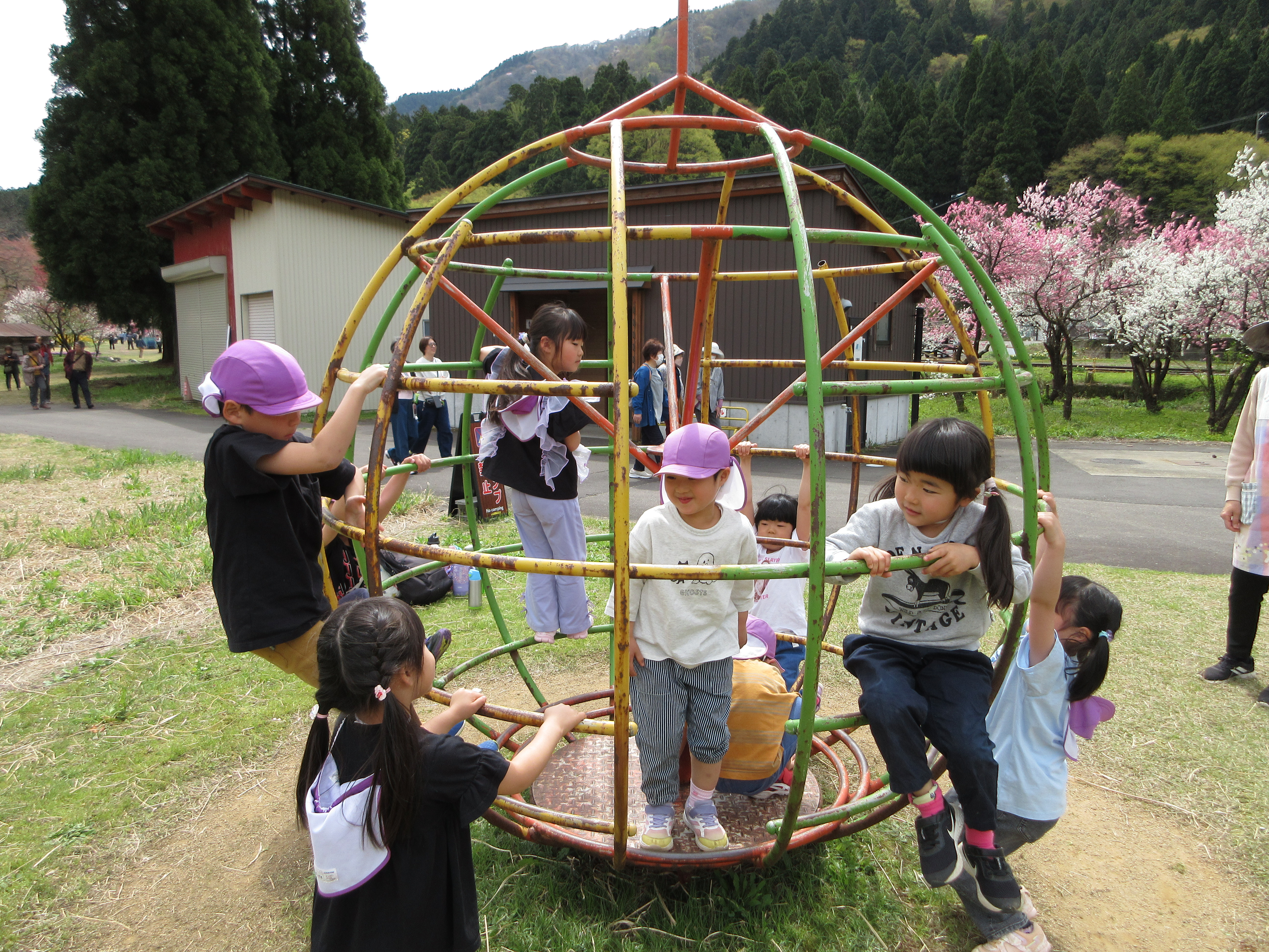 勝原の花桃を見に行ってきました!満開に咲いていて「かわいい💛」とうっとりしたり、匂いを嗅いでみたりと可愛い子どもたちでした。越美北線を見ることもでき、公園でも遊んで大満足のお出かけでした。