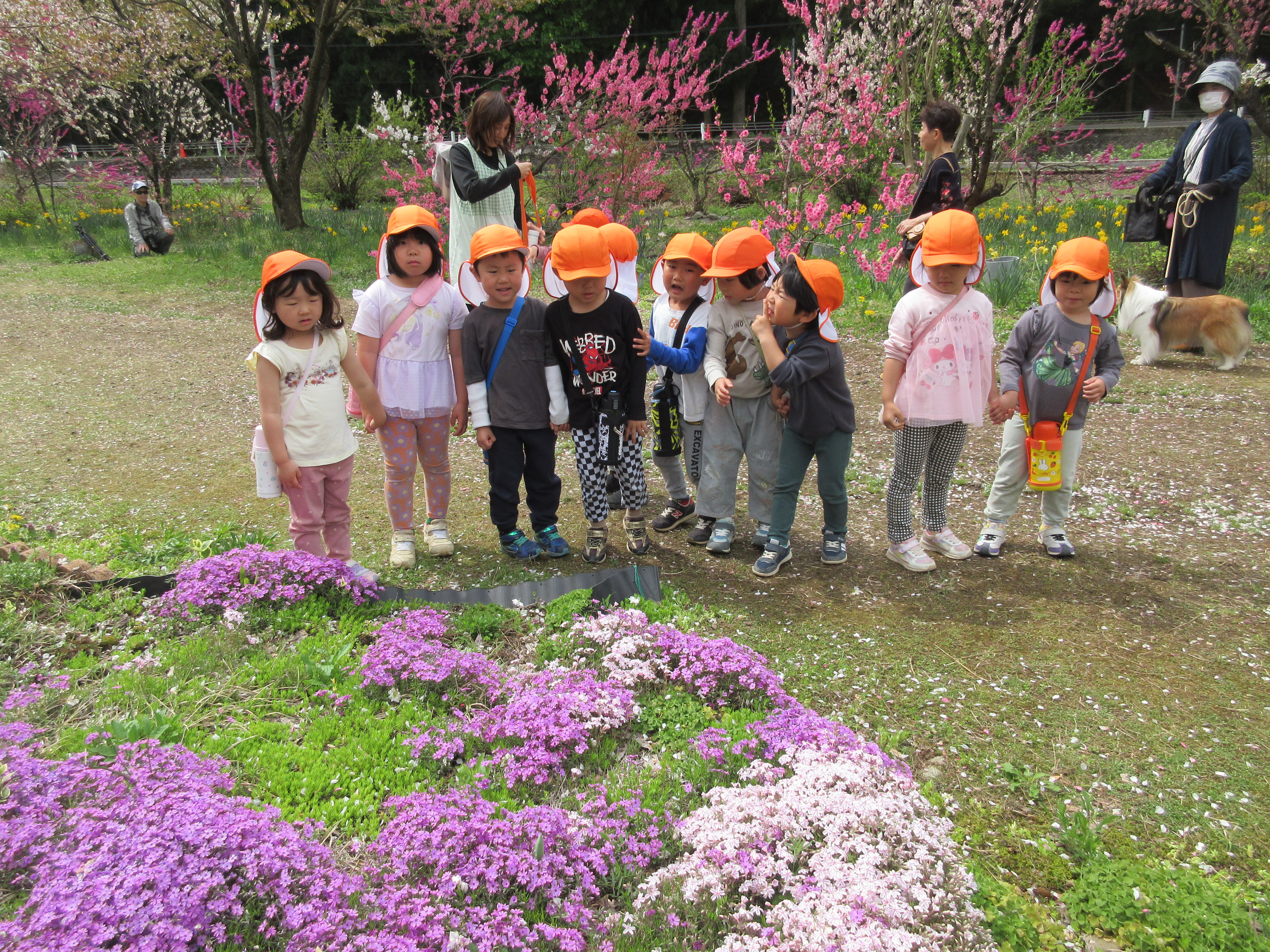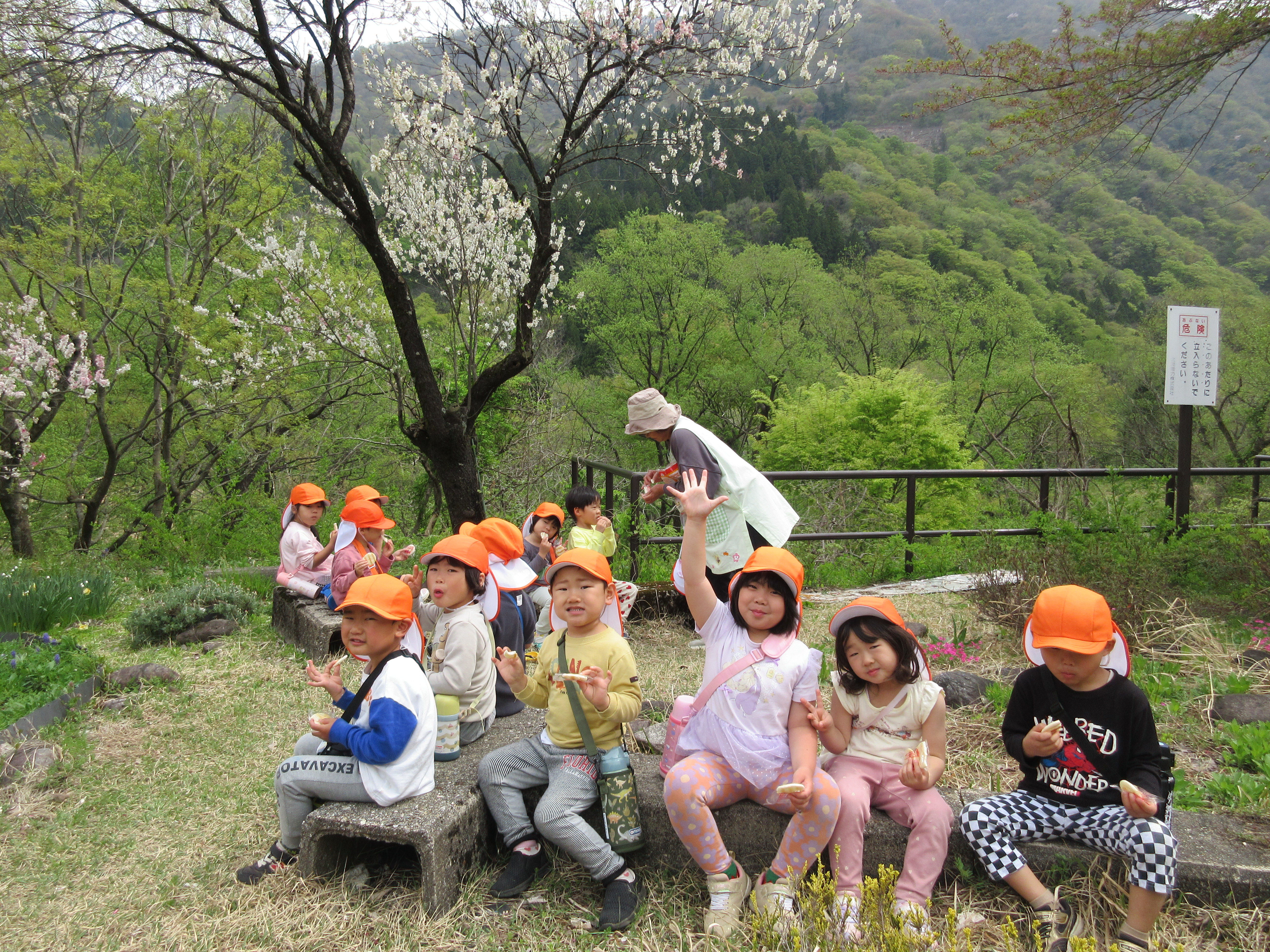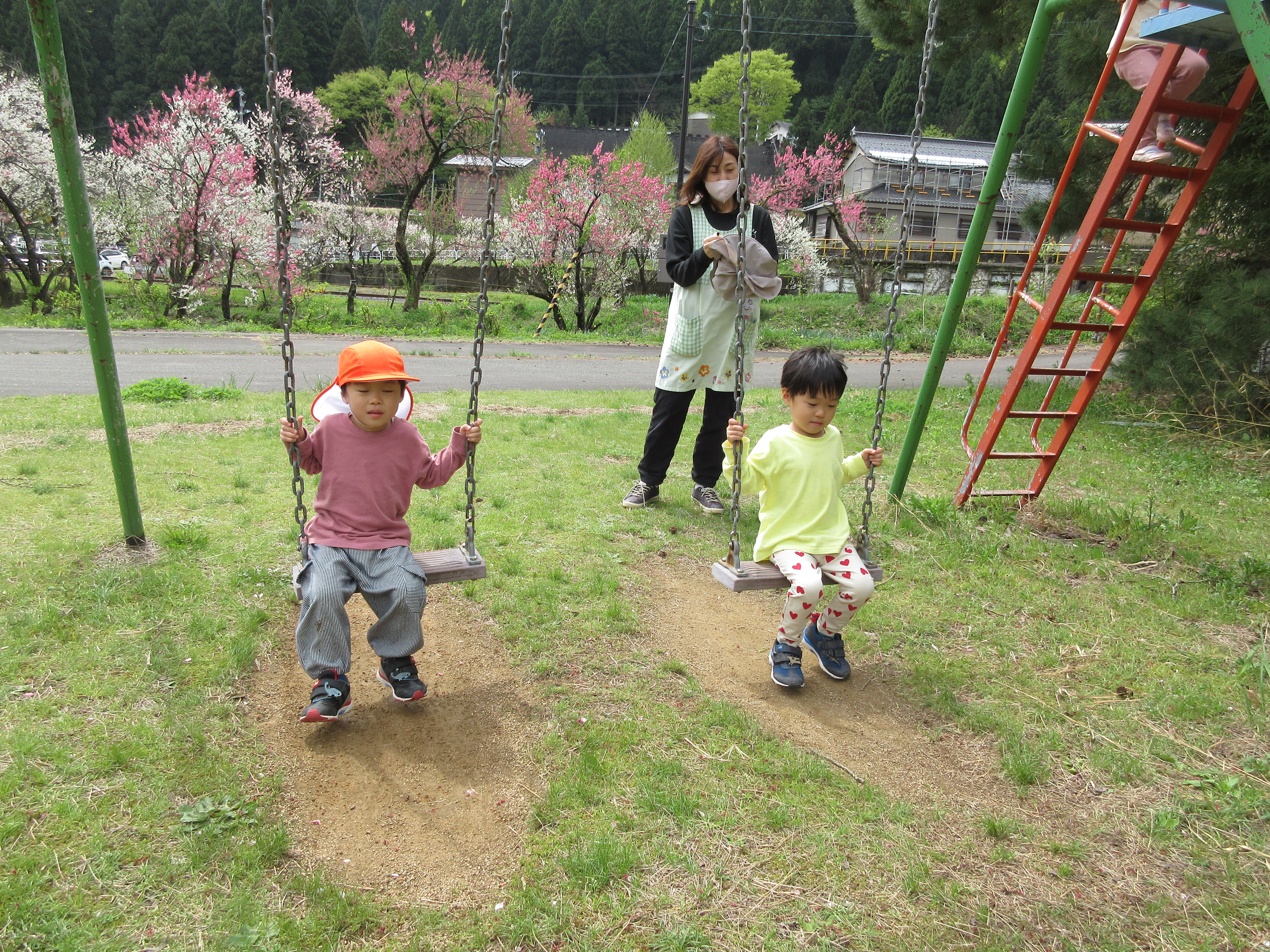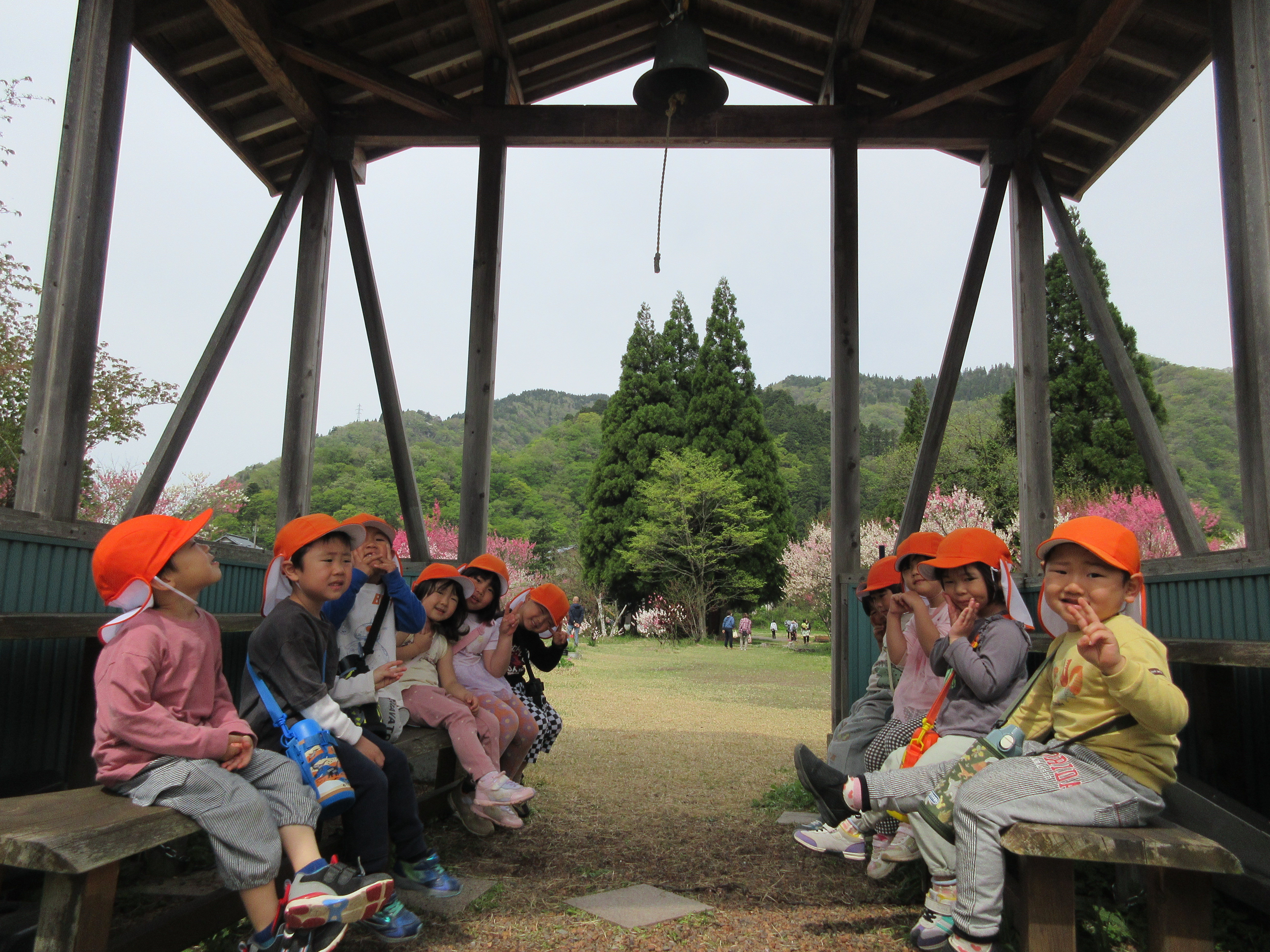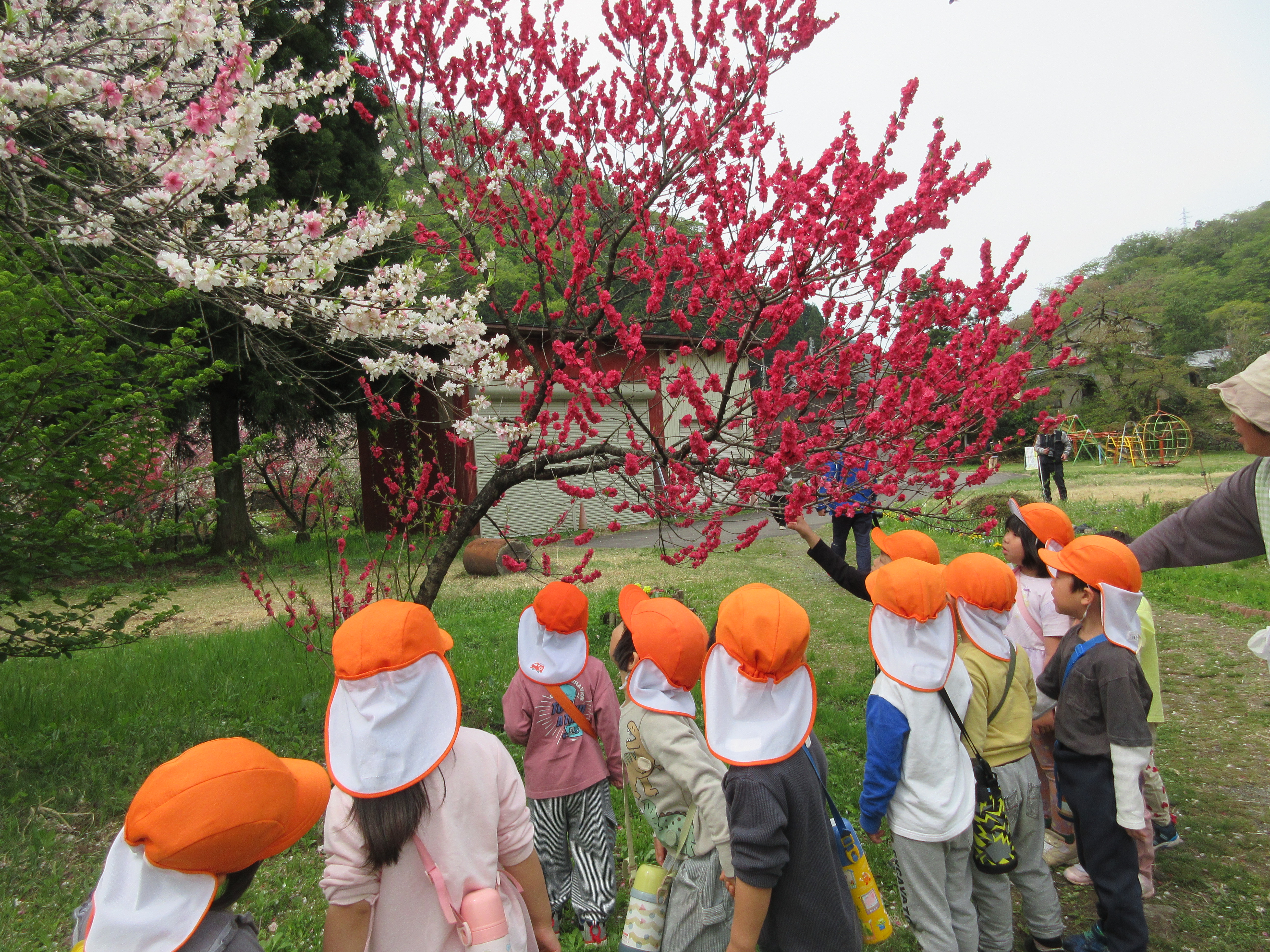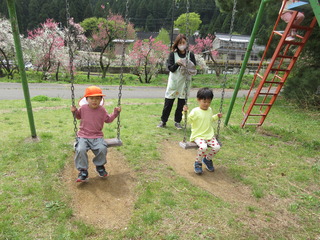 勝原にハナモモを見に行ってきました。ピンクや白の花の匂いは「いいにおい」の他に「カレーのにおい!」「納豆のにおい!」となぜか不思議な答えも(笑)遊具でもたくさん遊ぶことができて、楽しいお花見となりました。今日は越美北線が運休で残念でした💦