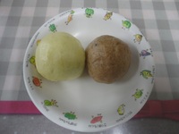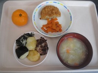 | ほしたべよ | コロッケ 人参の和風サラダ みそ汁 みかん 里芋もち(ゆかりごはん) |