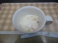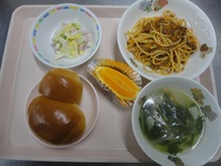 | フル-ツヨ-グルト | ミ-トスパゲティ 白菜サラダ かぶとベ-コンのス-プ ロ-ルパン オレンジ |