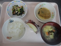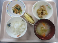 さばのおろし煮 ほうれん草とささみの酢和え みそ汁(さつまいも) ごはん りんご |