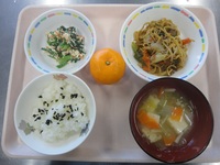 焼きそば ほうれん草の白和え みそ汁(厚揚げ) わかめごはん みかん |