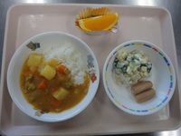 ウィンナ- 大豆とこんにゃくのサラダ カレ-ライス オレンジ |