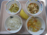 | ほしたべよ | マ-ボ-豆腐 キャベツの磯和え 白菜と春雨ス-プ ごはん バナナ |