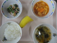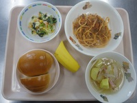 ナポリタン 小松菜サラダ わかめス-プ ロ-ルパン バナナ |