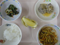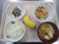 | マカロニあべかわ | 牛肉とじゃが芋の煮物 千切り大根とひじきのサラダ みそ汁(厚揚げ) ごはん バナナ |