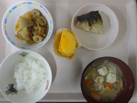 焼き鯖 千切大根と里芋の旨煮 豚汁 ごはん 柿 |