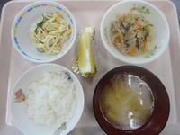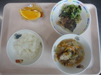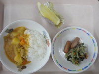 ウィンナ- キャベツとほうれん草の磯和え カレ-ライス グレ-プフル-ツ |