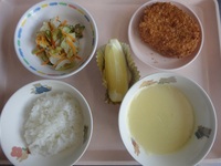 コロッケ ごま酢キャベツ さつま芋のポタ-ジュ ごはん グレ-プフル-ツ |