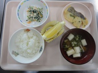 | おかかおにぎり | 白身魚の西京焼き ほうれん草の白和え 白はんぺんのすまし汁 ごはん グレ-プフル-ツ |