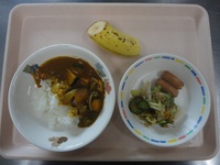 ウイニ- キャベツのおかか和え 夏野菜カレ- ごはん バナナ |