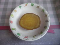 | 塩せんべい | ハンバ-グソ-ス煮 小松菜ともやしのお浸し おくらス-プ ごはん オレンジ |