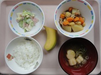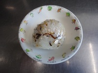 | 昆布おにぎり | 大豆の五目煮 ハムサラダ とろろ昆布汁 ごはん バナナ |