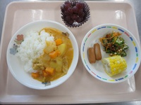 ウインナ- チ-ズ おくらのおかか和え ゆでとうもろこし ぶどう カレ-ライス(手作り) |