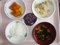 豚肉とキャベツのみそ炒め かぼちゃ煮 冷たいすまし汁 ごはん ぶどう |