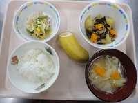 じゃがいものひじき煮 小松菜サラダ みそ汁 ごはん バナナ |