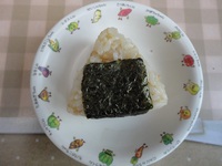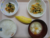 | おかかおにぎり | 豚肉のカレ-炒め ほうれん草の納豆和え みそ汁 ごはん バナナ |