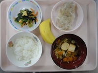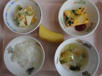 スパニッシュオムレツ スパゲティサラダ わかめス-プ ごはん バナナ |