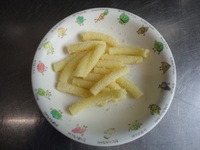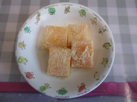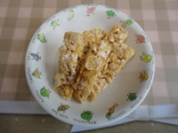 | 塩せんべい | しゅうまい 小松菜と卵の炒め物 麩のすまし汁 ごはん バナナ |