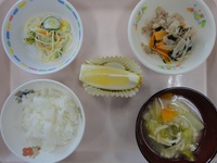 じゃが芋の昆布煮 マカロニサラダ みそ汁(えのき) ごはん バナナ |