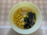 餃子のあんかけ 小松菜とじゃこの和え物 ビーフンスープ ごはん バナナ |