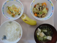 肉じゃが キャベツとツナのホットサラダ 勝山水菜のみそ汁 ごはん バナナ |