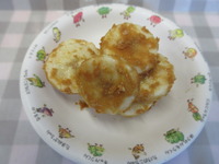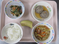 鶏つくねのあんかけ ほうれん草の納豆和え カレ-うどん ごはん バナナ |