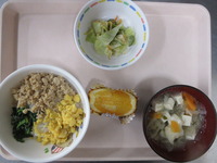 そぼろ丼 ごま酢キャベツ みそ汁(千切り大根) はっさく |