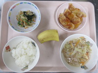 ぎょうざのあんかけ 切干大根のごま酢和え ビ-フンス-プ ごはん バナナ |