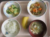 肉じゃが ブロッコリ-と卵のサラダ みそ汁(わかめ) ごはん バナナ |