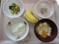 | バナナヨーグルト | さんまのかば焼き 切干大根のごま酢和え わかめスープ ごはん オレンジ |