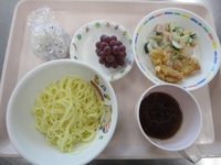 鶏肉の唐揚げ 大豆とこんにゃくのサラダ 流しラーメン ぶどう |