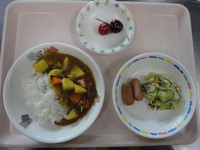 ウインナー ごま酢キャベツ カレーシチュー ごはん アメリカンチェリー |