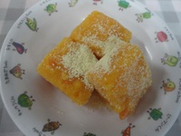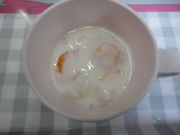 | フルーツポンチ | ちくわの磯部揚げ 大豆とこんにゃくのサラダ 煮込みうどん ゆかりごはん オレンジ |