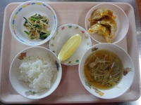 餃子のあんかけ 切り干し大根のごま酢和え ビーフンスープ ごはん グレープフルーツ |