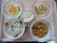 ちくわの磯部揚げ キャベツとツナのホットサラダ 煮込みうどん わかめうどん りんご |