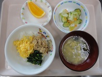 そぼろ丼 ごま酢キャベツ みそ汁(切り干し大根) オレンジ |