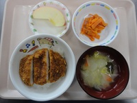 ソースカツ丼 にんじんの和風サラダ みそ汁 りんご |