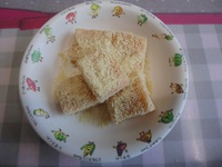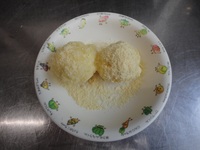 | ぽたぽた焼き | がんもどきの煮付け キャベツの磯和え サーモンシチュー ごはん りんご |