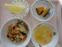 スタミナ中華丼 かぼちゃ煮 野菜のコロコロスープ グレープフルーツ |