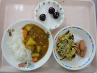 ウインナー かみかみサラダ カレーライス アメリカンチェリー |