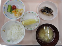 白身フライ わかめの酢の物 冬瓜のベーコンスープ チキンライス バナナ |
