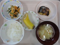 焼き鯖 五目和え みそ汁(じゃが芋、豆腐) ごはん バナナ |