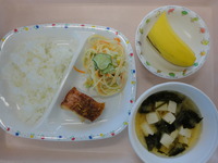 焼き赤魚 スパゲティサラダ みそ汁(えのき) ごはん バナナ |