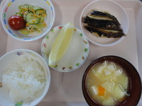 焼き鯖 ミニトマト ごま酢キャベツ みそ汁(じゃが芋、玉ねぎ) ごはん グレープフルーツ |
