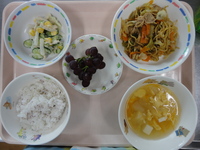 焼きそば ツナサラダ 卵スープ ゆかりごはん ぶどう |