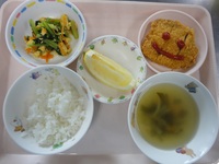 とんかつ 小松菜と卵の炒め物 わかめスープ(コーン、玉ねぎ) ごはん グレープフルーツ |